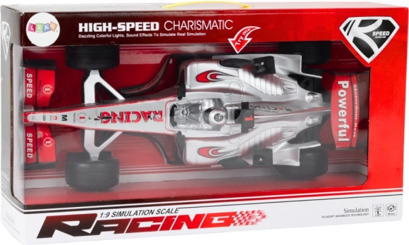 Rennsportwagen mit Aufzieh-Antrieb 1:9, silbern, mit Licht und Sound