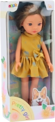 Puppe im gelben Kleid mit braunen Haaren 33 cm