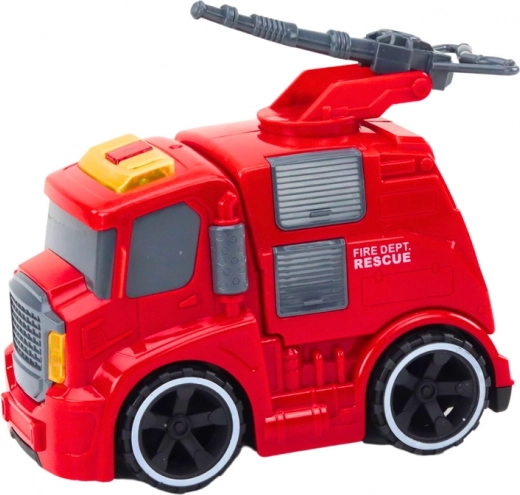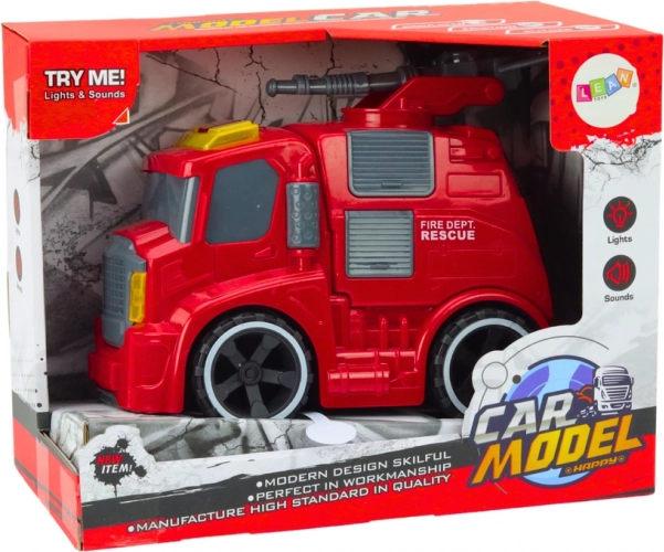 Auf dem Dach des Fahrzeugs befindet sich eine bewegliche Wasserkanone, die gedreht und ausgerichtet werden kann, um Löscheinsätze zu simulieren. Diese Funktion erhöht den Realismus des Spiels und ermöglicht es Kindern, in die Rolle echter Feuerwehrleute zu schlüpfen. Das Feuerwehrauto ist mit Sound- und Lichteffekten ausgestattet, die echte Geräusche eines Feuerwehrfahrzeugs wiedergeben, wie die Sirene und den Motor. Leuchtende, blinkende Lichter verleihen dem Spiel Authentizität und Spannung. Das Fahrzeug hat einen Antrieb, was bedeutet, dass es nach dem Anstoßen automatisch vorwärts fährt. Dank dieser Funktion können Kinder beobachten, wie sich das Feuerwehrauto selbstständig bewegt, was dem Spiel Realismus und Attraktivität verleiht.