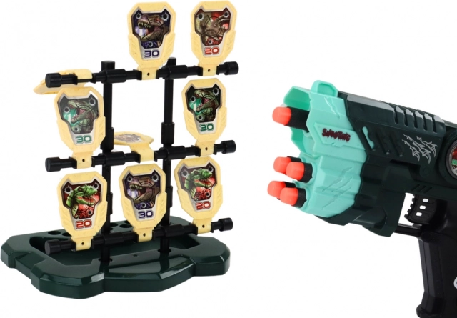 Pistole mit Zielscheibe und Schaumstoffpfeilen – Dinosaurier