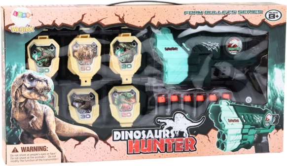 Ein unterhaltsames und sicheres Schießset mit Dinosauriermotiv, ideal für aktive Kinder. Enthält Schaumstoffpfeile, eine Pistole und eine Zielscheibe für Wettkampfspiele und zum Trainieren der Treffsicherheit.