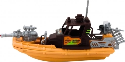 Das militärische Kampfschiff ist mit einer Kanone ausgestattet, die Sound- und Lichteffekte bietet und jeder Schlacht eine unglaubliche Portion Realismus verleiht. Das Set enthält außerdem ein Motorrad für schnelle Angriffe und einen Hubschrauber für vielfältige Szenarien.
