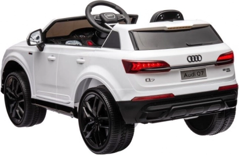 Lassen Sie die Kinder die Welt aus der Perspektive des Fahrers erkunden mit Steuerungs- und interaktiven Elementen wie Lenkrad, Pedal und USB-Anschluss für musikalische Begleitung. Der Audi Q7 ist auch mit einem realistischen Steuerungssystem und Stauraum für Spielzeug ausgestattet, was diese Fahrt noch nützlicher macht.