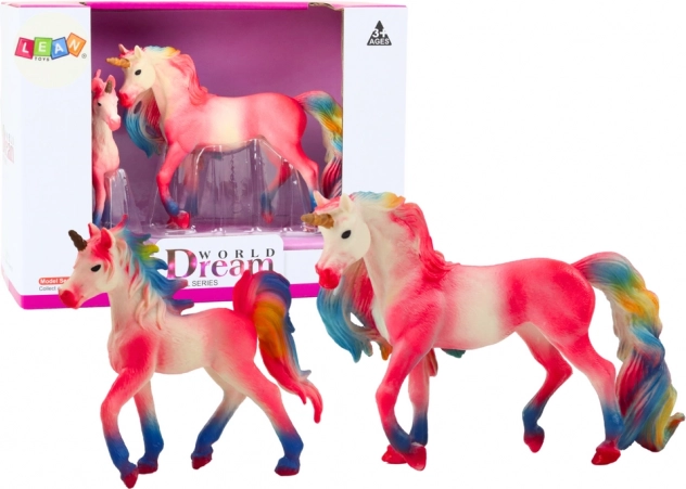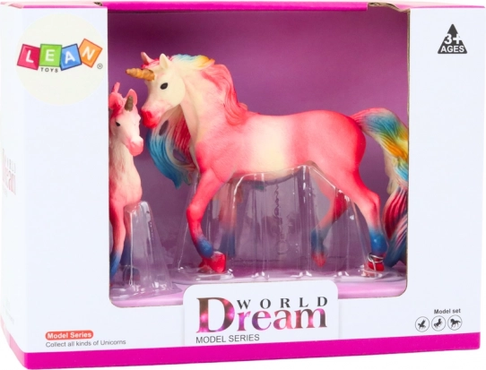Bezauberndes Set aus zwei rosa Einhörnern – einem Erwachsenen und einem Fohlen – für magisches Spiel und als Dekoration. Realistische Details, bunte Mähne und Schweif, robuste Ausführung sowie CE- und EN71-Zertifizierung sorgen für sicheren Spielspaß ab 3 Jahren.