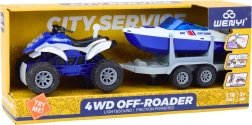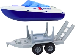Polizeiquad mit Bootsanhänger und Motorboot