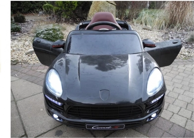 Im Inneren des Autos finden Sie einen weichen gepolsterten Sitz, der Komfort und Sicherheit garantiert, während die mitgelieferte 2.4G-Fernbedienung elterliche Kontrolle über das Auto ermöglicht. Die Karosserie in markantem Schwarzton ist mit roten Akzenten und beeindruckenden LED-Leuchten versehen, die die Sichtbarkeit und Sicherheit auf den Straßen erhöhen.