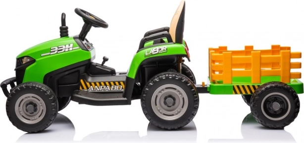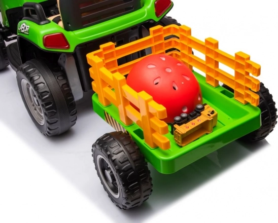 Dieser grüne Kindertraktor mit Batterie sorgt für stundenlangen Spaß an der frischen Luft. Große, profilierte Räder meistern verschiedene Untergründe, und der abnehmbare Anhänger ermöglicht kleinen Fahrern, Spielsachen oder Kleinigkeiten zu transportieren. Realistische Details wie Lenkrad, Armaturenbrett und Bedienelemente vermitteln ein echtes Fahrgefühl.