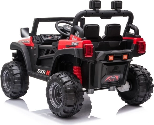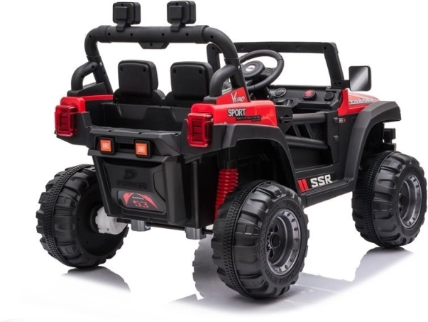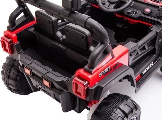 Das interaktive Armaturenbrett mit USB-Eingang ermöglicht das Abspielen der Lieblingslieder, während der Doppelsitz und die hintere Federung den Komfort und die Stabilität erhöhen. Die ideale Wahl für Kinder, die Action, Geschwindigkeit und Stil lieben.