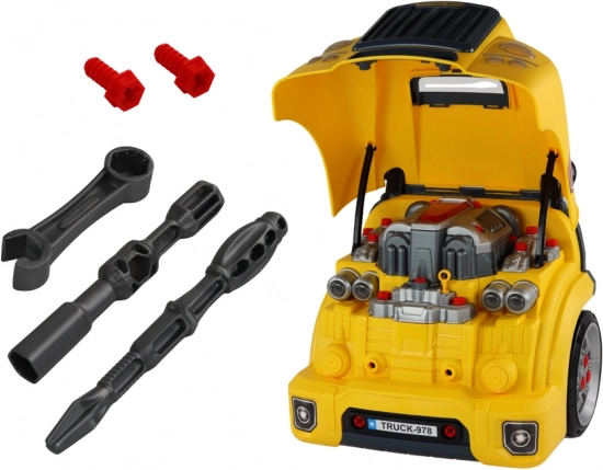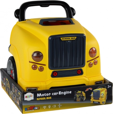 Montage-Spielzeugbus für Kinder – gelber Werkstattbus mit zerlegbarem Motor