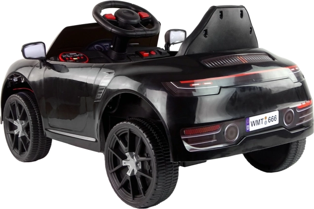 Das elegante schwarze Auto ist für kleine Fahrfans konzipiert. Details wie Lenkrad, Rückspiegel und sportliche Linien regen die Fantasie an und verleihen dem Fahrzeug einen authentischen Look.