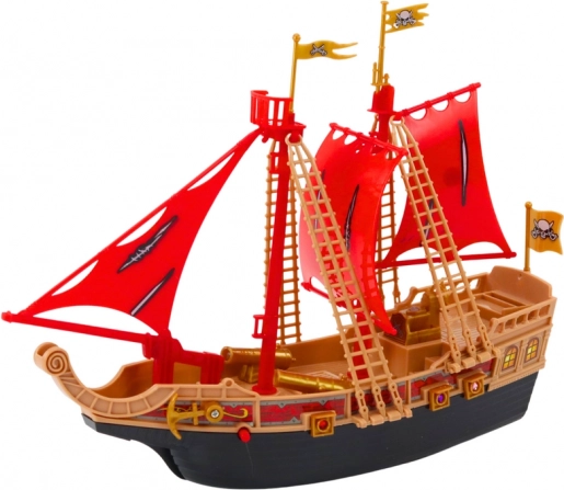 Entdecken Sie Abenteuer auf hoher See mit diesem detailreich gestalteten Piratenschiff in Schwarz. Es bietet Licht- und Soundeffekte, praktische Räder für einfaches Bewegen und ein attraktives Design mit roten Masten. Die ideale Spielzeugwahl für kleine Piraten, die Fantasie und Kreativität fördert.