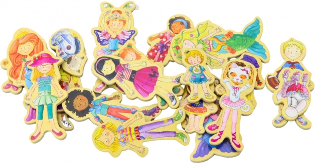 Holzmagnetische Figuren sind ein außergewöhnliches Set mit 20 unterschiedlichen Figuren in bunten Kostümen. Jede Figur hat ihre eigene Identität und ihr eigenes Design, was Kindern ein praxisnahes Spiel ermöglicht und ihre Erzählfähigkeiten fördert.