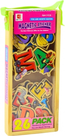 Mit diesem Set können Kinder das Alphabet interaktiv lernen und Buchstaben erkennen. Jeder Magnet ist sorgfältig gestaltet, um die Aufmerksamkeit zu erregen und das Lernen durch Spiel zu fördern. Zum Beispiel ist der Buchstabe 'A' mit einem Bild eines Apfels und der Buchstabe 'P' mit einem Pinguin dargestellt.