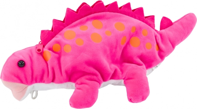Dieser rosa Plüsch-Dinosaurier begeistert Kinder mit seinem weichen Material und überrascht zugleich mit einer cleveren Aufbewahrungsfunktion. Auf dem Rücken besitzt er einen hochwertigen Reißverschluss und dient so als Federmäppchen, Täschchen für Kleinigkeiten oder Mini-Tasche für geheime Schätze.