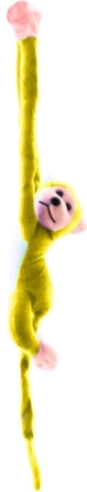 Dieser große gelbe Plüschaffe bringt viel Freude und Komfort. Dank des weichen, flauschigen Materials ist er ideal zum Kuscheln, und sein verspieltes Design zaubert in jeder Situation ein Lächeln. Die Klettverschlüsse an den Händen ermöglichen es, den Affen leicht aufzuhängen – am Kinderbett, am Kinderwagenbügel – oder das Kind „umarmen“ zu lassen.