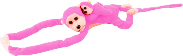 Das niedliche rosa Plüschäffchen mit Baby, 70 cm lang, ist ein kuschelweicher Freund für Kinder. Dank der langen Gliedmaßen mit Klettverschluss lässt es sich leicht am Bettchen oder Rucksack befestigen. Weiches Material, angenehmes Kuscheln und CE- und EN71-Zertifizierung machen es zu einem sicheren und unterhaltsamen Spielzeug für Kinder ab 3 Jahren.