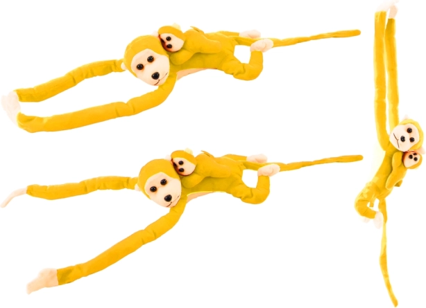 Plüschäffchen mit Baby ist eine zauberhafte Spielgefährtin, die für Kinder entwickelt wurde. Ihre leuchtend gelbe Farbe und Weichheit bringen jedem viel Freude und Wärme.