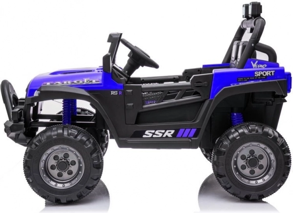 Für maximalen Komfort verfügt das Auto über einen Sitz aus ökologischem Leder und leise EVA-Räder, die für verschiedene Untergründe geeignet sind. Die 2,4-GHz-Fernbedienung ermöglicht es Eltern, jederzeit die Kontrolle zu übernehmen, während Kinder sich über die vorderen LED-Scheinwerfer und das Multimedia-Panel mit MP3, USB und SD freuen. Für Sicherheit sorgen Sicherheitsgurte und eine Automatikbremse beim Loslassen des Gaspedals.