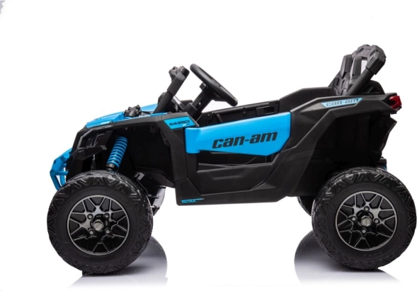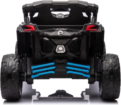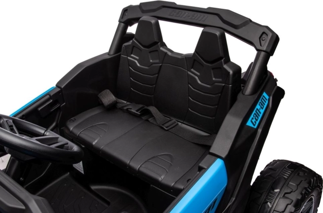 Der Buggy Can-Am ist mit Elementen ausgestattet, die einem echten Offroad-Fahrzeug ähneln, mit großen Rädern und robuster Konstruktion.