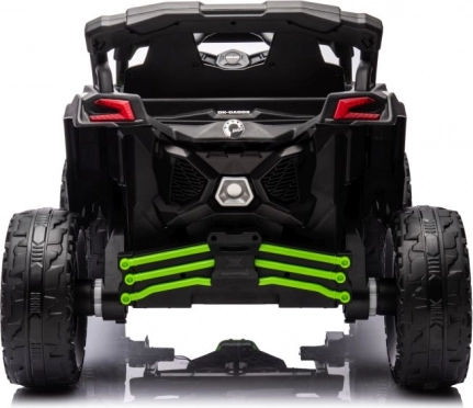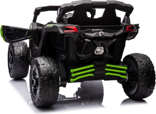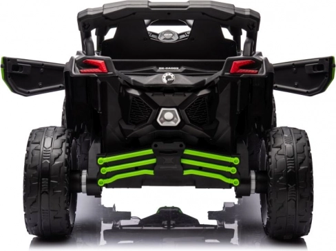 Kindergeländewagen Can-Am bietet sicheres und unterhaltsames Fahren für kleine Abenteurer. Die robuste Konstruktion und das markante grün-schwarze Farbschema sorgen für ein tolles Fahrerlebnis sowohl im Freien als auch auf dem Spielplatz.