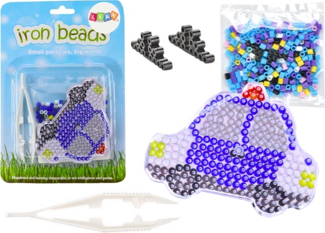 Das Set bietet farbige Perlen, mit denen man ein Muster mit den mitgelieferten Pinzetten erstellen kann. Kinder üben auf diese Weise die Hand-Augen-Koordination und die Genauigkeit der Bewegungen. Nach dem Abschluss des Musters werden die Perlen mit speziellem Papier abgedeckt und gebügelt. Das Ergebnis ist ein langlebiges, farbenfrohes Bild eines Autos, das als Dekoration oder originelles Geschenk dienen kann.