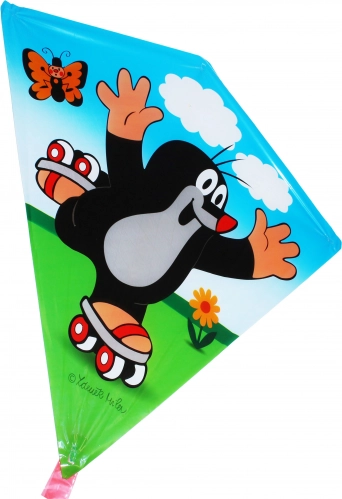 Genießen Sie die windigen Herbsttage mit einem Kinderdrachen mit dem Motiv Der kleine Maulwurf auf Schlittschuhen. Er bietet eine leichte, einfache Konstruktion, hervorragende Wendigkeit und sehr gute Sichtbarkeit am Himmel. Bestandteil ist ein Griff mit Schnur, Größe des Drachens 68 × 73 cm.