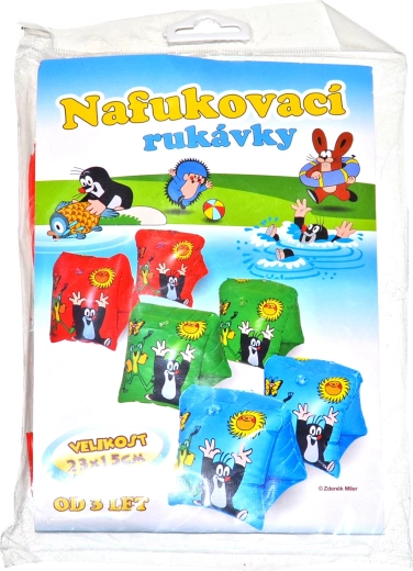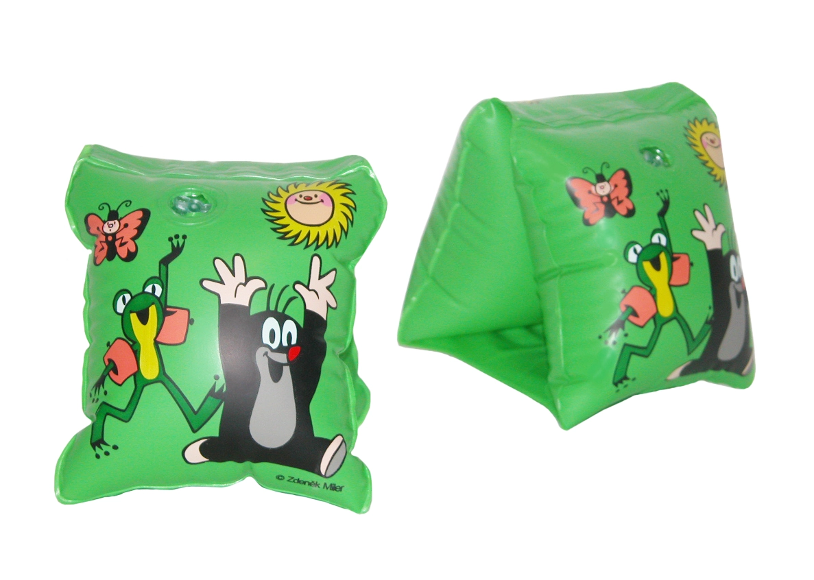 Fröhliche aufblasbare Schwimmflügel mit dem Motiv KRTEK helfen Kindern, sich im Wasser sicher und geborgen zu fühlen. Dank der Maße 23 × 15 cm bieten sie stabilen Auftrieb, angenehmen Tragekomfort und einfaches Aufblasen – ideal für Kinder von 3–6 Jahren bei den ersten Schwimmversuchen und Wasserspielen.