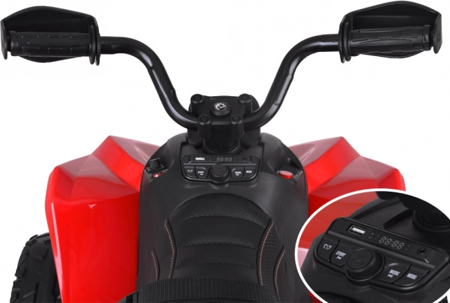 Junge Fahrer freuen sich über das Musikpanel mit vorinstallierten Melodien, USB/MP3-Eingang und FM-Radio sowie über den praktischen Fahrtrichtungs-Schalter (vorwärts/Stop/rückwärts) und den Lichtschalter. Der breite Sitz mit ECO-Lederbezug und Sicherheitsgurten bietet auch auf längeren Strecken Komfort. Die robuste Konstruktion aus hochwertigem Kunststoff ist auf Langlebigkeit und tägliche Abenteuer ausgelegt.