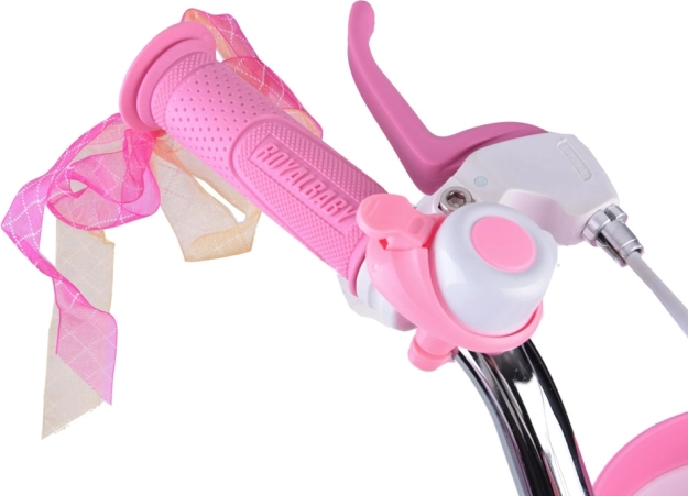 ROYALBABY Little Swan 14" ist ein bezauberndes Kinderfahrrad in rosa-weißer Farbkombination, entwickelt für die ersten Fahrten mit maximalem Fokus auf Sicherheit, Komfort und leichtes Lernen. Der leichte Stahlrahmen erleichtert das Auf- und Absteigen und die voluminösen Reifen mit rutschhemmendem Profil sorgen für sicheren Bodenkontakt.