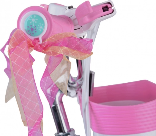 Der ergonomische Lenker mit weichen Griffen, Klingel und Fransen erfreut kleine Fahrerinnen, während die Kombination aus vorderer Seitenzug- und hinterer Trommelbremse ein sanftes und sicheres Bremsen ermöglicht. Stützräder geben zusätzliche Stabilität beim Lernen und der praktische Korb fasst Kleinigkeiten. Den Fahrkomfort ergänzt ein weicher, höhenverstellbarer Sattel mit Führungsgriff.