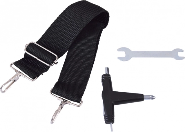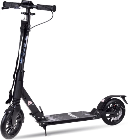Der „One-Hand“-Mechanismus ermöglicht das Zusammenklappen des Scooters in wenigen Sekunden. Der mitgelieferte Schultergurt erleichtert das Tragen in öffentlichen Verkehrsmitteln und über Treppen.
