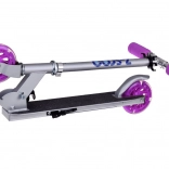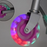 Dieser klappbare Kinderroller vereint Leichtigkeit, Robustheit und Sicherheit. Die Räder leuchten während der Fahrt automatisch dank magnetischer Energie, Batterien sind nicht erforderlich. Die Metallkonstruktion aus Aluminium und Stahl gewährleistet Langlebigkeit und ein geringes Gewicht für einfache Handhabung.