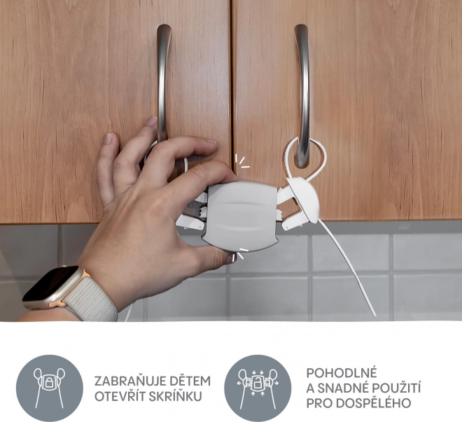 Das Universalschloss verhindert den Zugang von Kindern zu Schränken und Schubladen und minimiert so das Risiko von Gefahren.