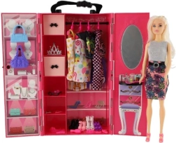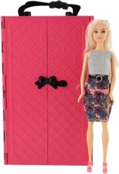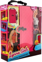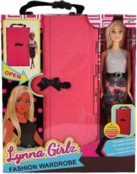 Puppe Lynna mit Kleiderschrank aus Kunststoff 30 cm mit Zubehör in Schachtel 26x32x8 cm