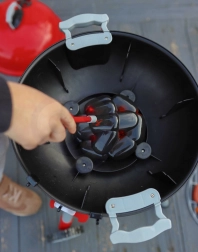 Nähert man das Feuerzeug, glühen die Kohlen rot auf und es ertönt ein realistisches Anheizgeräusch. Die Effekte lassen sich jederzeit per Knopfdruck ausschalten.