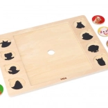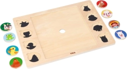 Zuerst wird das 9-teilige Mittelstück zusammengesetzt, danach werden 8 runde Plättchen den passenden Schatten zugeordnet. Kinder trainieren so Genauigkeit, Geduld und Formwahrnehmung.