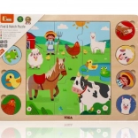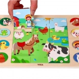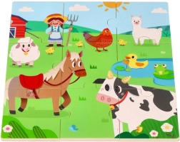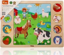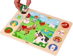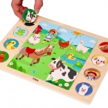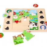 Dieses clevere Puzzle verbindet zwei Aktivitäten: Zuerst setzen Kinder das Mittelbild aus 9 großen Teilen zusammen, anschließend ordnen sie 8 runde Tier-Token den entsprechenden Schatten auf der Tafel zu. Das Spiel fördert ganz natürlich den Wortschatz – nach dem Puzzeln können die Kinder die Tiere benennen und sie auf dem großen Bauernhofbild suchen.