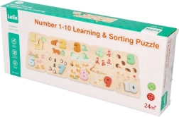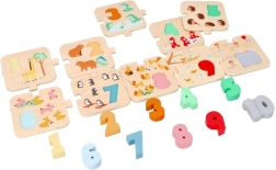 Dieses hochwertige, hölzerne Lernset fördert frühe mathematische Fähigkeiten. Kinder ordnen die Zahlen 1–10 den passenden Tierteilen zu und eignen sich so auf natürliche Weise Zählen und Sortieren an. Die robuste Holzqualität und die kräftigen Farben motivieren zu wiederholtem Spiel.
