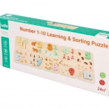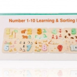 Jede Ziffer hat eine eigene Farbe und ein passendes Teil mit Tiermotiv, was das visuelle Gedächtnis sowie die ersten Schritte in der Zahlenwelt unterstützt.