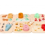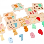 Das Spielzeug ist von den Prinzipien der Montessori-Pädagogik inspiriert – Kinder lernen in ihrem eigenen Tempo, mit allen Sinnen und durch praktische Tätigkeiten. Das Puzzle fördert Hand-Auge-Koordination, Konzentration und visuelle Wahrnehmung.