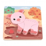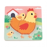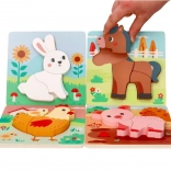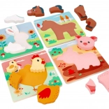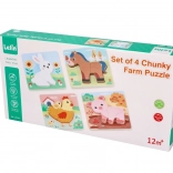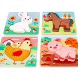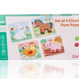 Entdecken Sie spielerisches Lernen mit diesem Set aus vier Holzpuzzles mit Bauernhofmotiven – Kaninchen, Pferd, Küken und Ferkel. Jedes Puzzle hat stabile, „chunky“ Teile, ideal für kleine Kinderhände, sowie farbige Einlegeplatten, die das Erkennen von Formen und Tieren fördern.