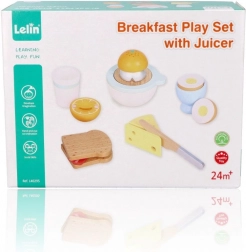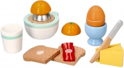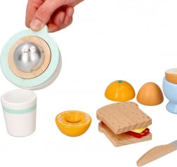 Holzernes Frühstücksset für kleine Köche bringt alles für ein realistisches Kochspiel – Toasts, Ei im Becher, Käse, handbetriebener Entsafter mit Orange, Tasse und ein sicherer Holzmesser. Ab 24 Monaten fördert es Feinmotorik, Kreativität und Rollenspiele mit hochwertiger und robuster Ausführung.