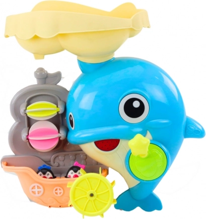 Aktivieren Sie den Delfin durch das Eingießen von Wasser, um Teile zum Bewegen zu bringen, die während des Bades für Unterhaltung sorgen.