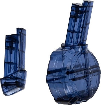 Kompakter 40-ml-Tank für Leichtigkeit und Tempo, 400-ml-Trommeltank für lange Schlachten. Schnelles Entriegeln per blauem Knopf und auslaufsichere Abdichtung.