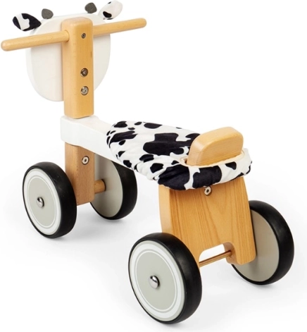 Der Lauflernwagen hat ein lustiges Design in Kuhform, das die kindliche Fantasie und Vorstellungskraft unterstützt.