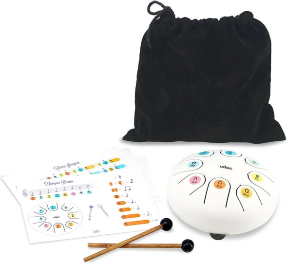 Die Trommel ist in C-Dur gestimmt und ermöglicht es Kindern, musikalische Fähigkeiten auf unterhaltsame Weise zu erlernen. Sie enthält speziell entwickelte Noten, die das Spielen bekannter Melodien erleichtern und das Lernen unterstützen. Es ist ein ideales Instrument nicht nur für Entspannung und Meditation, sondern auch für die musikalische Entwicklung von Kindern.
