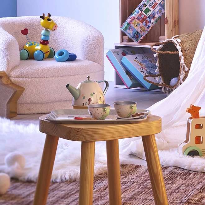 Das Tee-Set von Vilac ist das perfekte Werkzeug zur Förderung des sozialen Verhaltens und der Vorstellungskraft von Kindern. Die Kanne ist mit einer Spieluhr ausgestattet, die beim Kippen die Melodie „Viel Glück und Gesundheit“ abspielt. Dieses Spielzeug benötigt keine Batterien, was umweltfreundlich und praktisch ist.