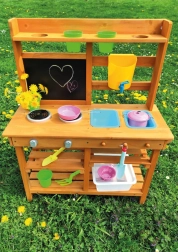 Geben Sie Ihren Kindern die Möglichkeit, frische Luft zu schnappen und dabei ihre kulinarische Kreativität zu entfalten. Diese bezaubernde Holz Gartenküche ist ideal für kleine Köche, die ihre Fantasie in ein köstliches Menü verwandeln möchten.