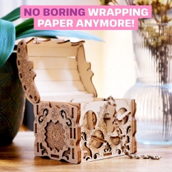 Schluss mit langweiligem Geschenkpapier und verschenken Sie Emotionen – der Geheime Schatz bietet dank eines ausgeklügelten Mechanismus das perfekte Erlebnis. Entdecken Sie die Geheimnisse, die in diesem einzigartigen Versteck verborgen sind, und teilen Sie den Spaß beim Wettstreit mit Freunden, wer zuerst das Geheimnis lüftet. Können Sie Ihre Einfallsreichtum beweisen und alle Rätsel lösen? Die hochwertige Box mit präzisem Laserschnitt und exklusivem Design wird jede Einrichtung schmücken, da sie aus 100% umweltfreundlichen natürlichen Materialien hergestellt wird.