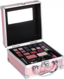 Eleganter rosa Kosmetikkoffer im kompakten Format bietet eine übersichtliche Organisation und eine komplette Ausstattung für Augen-, Wangen- und Lippen-Make-up. Das Aluminiumgehäuse mit Metallverschluss ist robust und zugleich leicht – ideal für die Handtasche oder auf Reisen.
